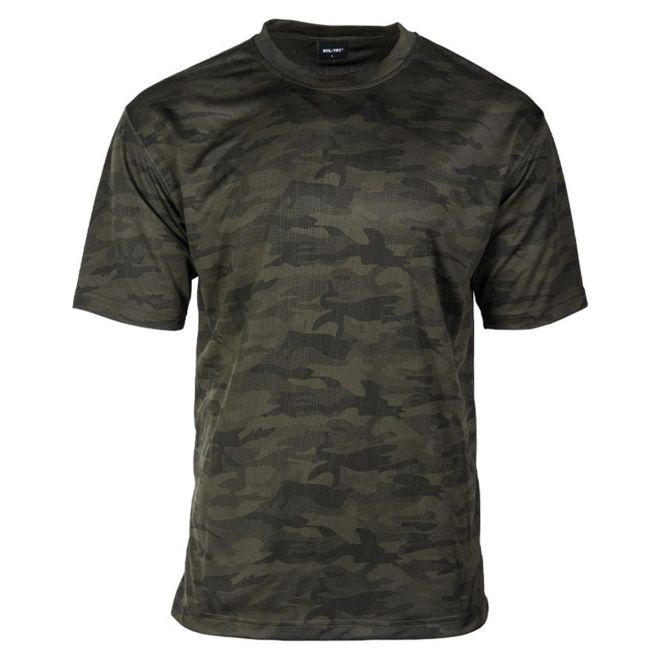 Бързосъхнеща тениска Miltec MESH е идеалния вариант за спортни дейности, военни учения и тренировки, както и еърсофт и дори за ежедневието. Изработена е от полиестерна материя с фина мрежеста плетка, която ще помогне на тялото да диша. Знаем, че много изкуствени материи запарват, но тук този ефект е избегнат чрез плетката на плата. Кухите нишки на полиестера не задържат влагата и тениската изсъхва много по-бързо в сравнение с памучната материя. Теглото е по-ниско и когато носите тениската имате усещане за лекота, а благодарение на новата технология, материята не драска и е мека на допир. Кройката е права, а ръкавите са с издължен профил надолу, за да не се разтягат и стърчат настрани. Яката е прибрана около врата, за да попива потта при интензивно движение. Ако Ви трябва удобна, дишаща, лека и практична тениска за спорт или разходки този модел е подходящ за Вас.