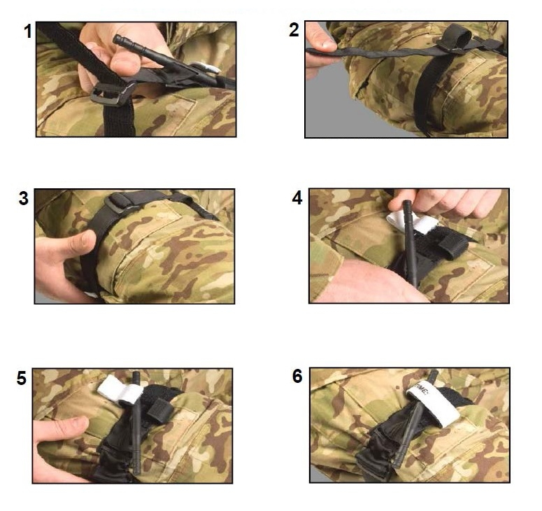 В схемата може да видите примерно поставяне на тактически турникет тип CAT