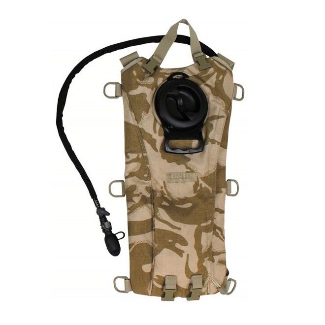 |Военна хидратираща система CamelBak Desert е специално проектирана по заявка на Британската армия, с цел да отговори на нуждите на бойците, изпълняващи мисии в пустинни и горещи условия. Изпълнена в оригиналния британски камуфлаж DDPM (Desert Disruptive Pattern Material), тази система комбинира здравина, функционалност и лекота. Раницата е изработена от реномираната марка CamelBak, специализирана в производството на такъв тип продукти. Външният калъф е направен от изключително здрава и износоустойчива Cordura. Под нея е разположен термоизолиращ слой, спомагащ за контрол на температурата на водата. Системата е изключително лесна за употреба – идеална за полеви условия, тактически дейности, подходяща и за цивилно ползване при преходи сред природата, спорт, лов или къмпинг.