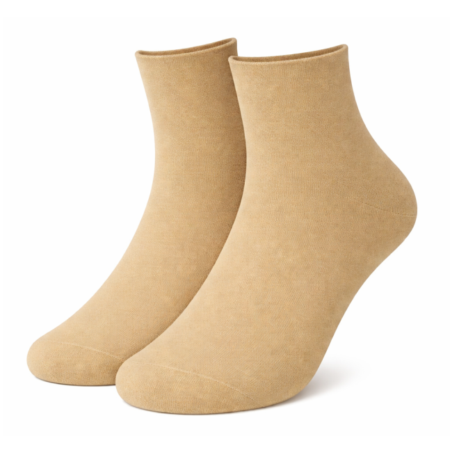 Къси чорапи без ластик в цвят Khaki, създадени за максимален комфорт при ежедневно носене. При този модел, неприятното пристягане в областта на глезена е напълно елиминирано. Те са отличен избор както за хора с чувствителни крака, така и за страдащи от разширени вени или проблеми с кръвообращението. Идеални са за продължително носене по време на дълги дежурства.