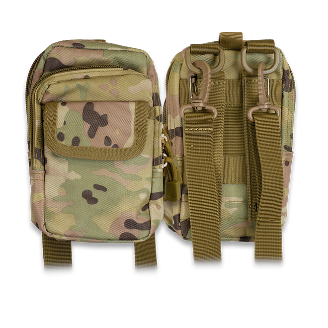 В горната част са разположени D-образни пръстени, към които се прикрепя регулируема презрамка за носене през рамо. Презрамката се закрепва с карабинери и може лесно да се премахва, когато джобът се използва като модулен елемент към екипировка.