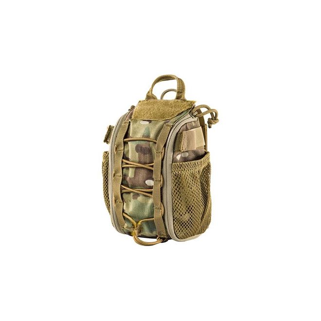 От двете страни са разположени мрежести джобове, както и къси велкро ленти, подходящи за фиксиране на медицински ножици, турникети или други пособия за спешна помощ. В предната част е интегриран еластичен бънджи шнур, позволяващ бързо закрепване на турникет. В горната част има велкро панел, предназначен за идентификационни лепенки – медицински кръст или друг отличителен знак.