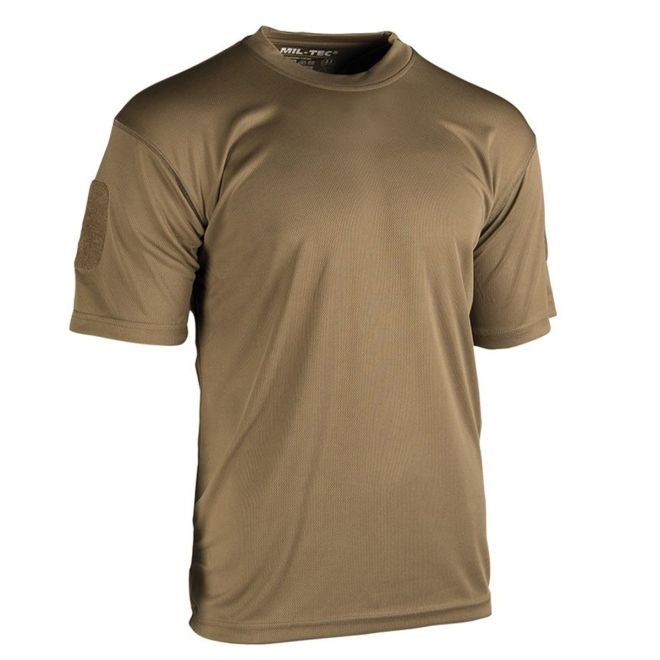 |Тактическата бързосъхнеща тениска Miltec Dark Coyote е функционална и високоефективна тениска, създадена за професионалисти в сферата на отбраната и сигурността. Произведена от немската компания Sturm Mil-Tec, тя съчетава спортни технологични характеристики с практичността на професионалното униформено облекло.