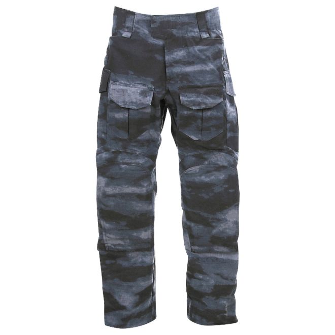 Тактическата кройка е разработена за максимална функционалност. Панталонът разполага с две странични джоба, два задни джоба, два малки джоба за пълнители, два големи карго джоба на бедрата и два по-малки джоба на подбедриците, които осигуряват достатъчно пространство за носене на тактически аксесоари. Двойният слой материал в областта на коленете и седалището гарантира допълнителна издръжливост при интензивна употреба. В областта на коленете има специални отделения за поставяне на меки протектори. Велкро ленти зад коляното позволяват допълнителна регулация на ширината. Тези наколенки са включени към панталона. В края на крачолите има вградени велкро лепенки за пристягане, които позволяват персонализиране на ширината според нуждите ви. Панталонът се закопчава чрез цип и велкро лепенка, като има и широки гайки за поставяне на различни типове колани.