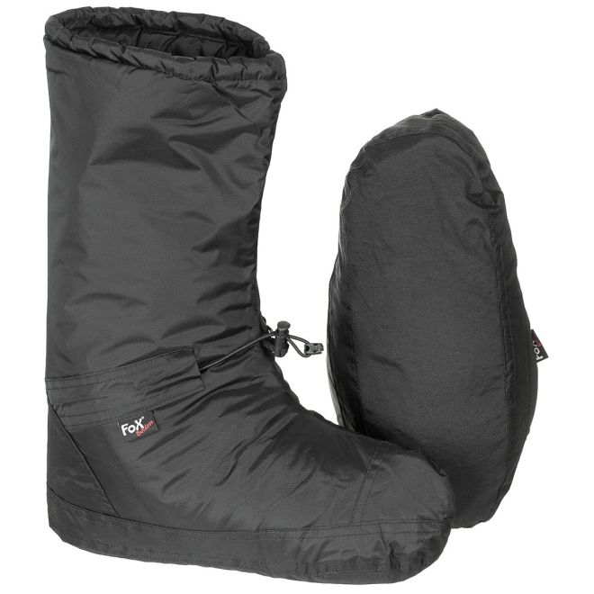Моделът е висок с еластично стягане около глезена със стопер, което предпазва от загуба на топлина. Еластичният отвор позволява лесно обуване и събуване, а универсалният размер ги прави подходящи за всеки. Перфектни за използване в спален чувал, палатка или като удобни хижарски обувки. В комплекта е включена транспортна торбичка със шнур за компактно съхранение.